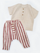 BOTTOM : Made with 100% soft khadi cotton, these red stripe breathable and lightweight knee length pants ensure all-day comfort. Designed with practical side pockets and playful stripes, they are ideal for any child's active day.
