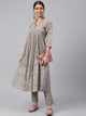 Black Pure Cotton Floral Printed A-line Kurta Set